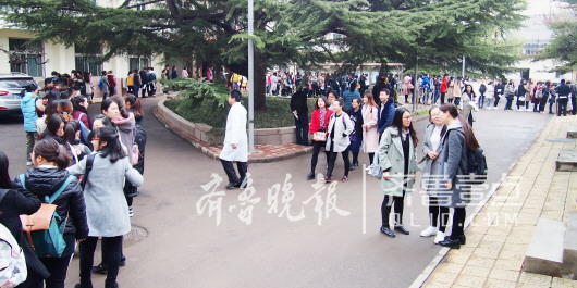 3月25日,山東省城某高校內(nèi),參加2017年研究生入學(xué)復(fù)試的考生排長(zhǎng)隊(duì)等候體檢。(資料片) 齊魯晚報(bào)·齊魯壹點(diǎn)記者 周青先 攝