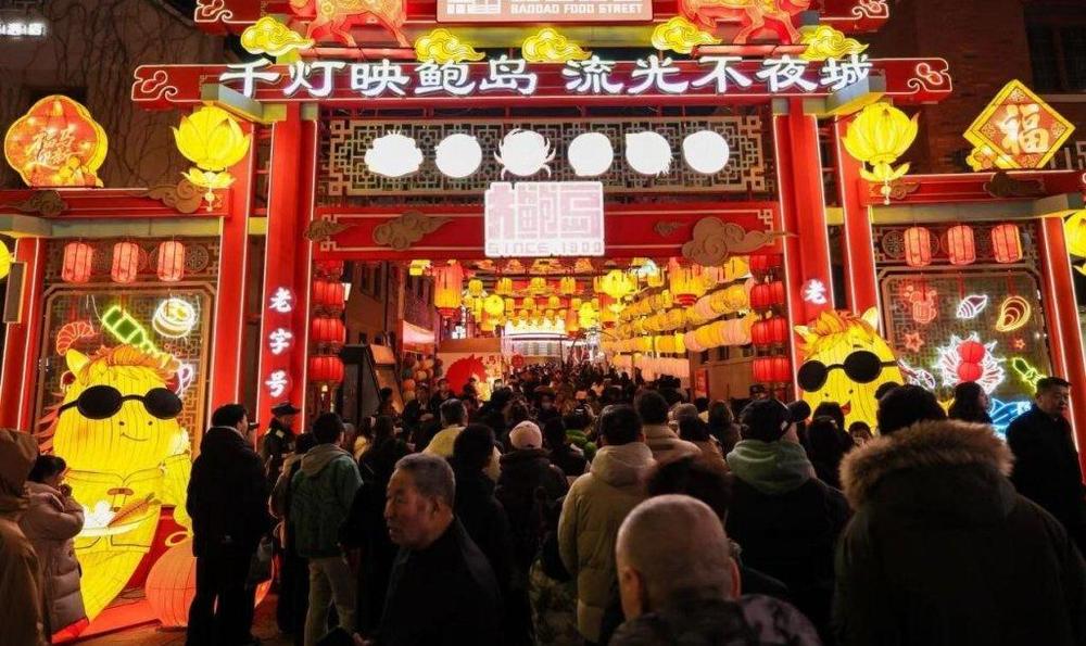 青島萬象城,巴奴毛肚火鍋店外三四十位顧客刷著手機等待叫號,店內熱氣蒸騰;德州萬達廣場,市民在盒馬鮮生門店選購走親訪友、家庭聚餐的貨品;煙臺朝陽街,紅燈籠綴滿百年洋樓,陣陣果香裹著年味漫過街角……