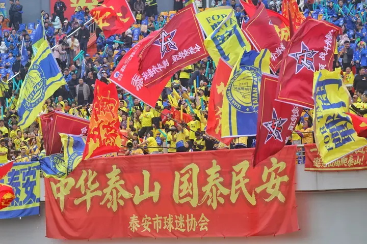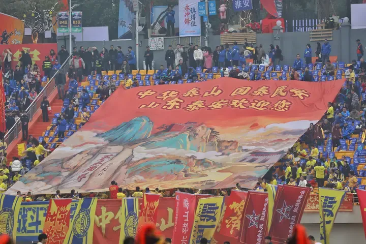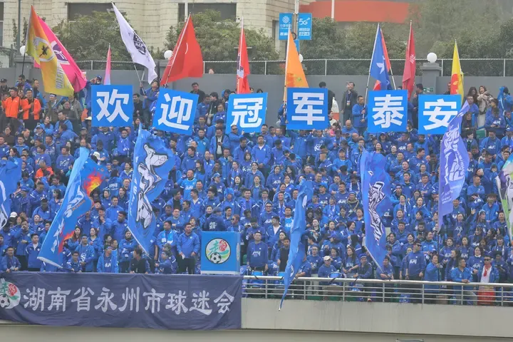 當然,泰安帶來的沖擊遠遠不止球迷。永州賽場外,泰安展臺成為了新晉“人氣打卡點”,在五岳獨尊展板前,全國各地球迷爭相拍照留念,“泰安加油,曉了顯火”,永州當?shù)厝苏宫F(xiàn)了東道主熱情的一面,紛紛為泰安打call。