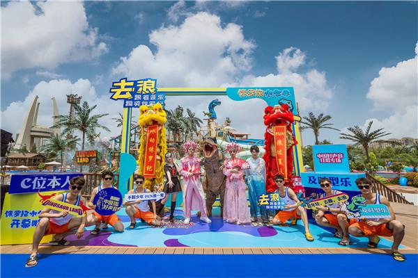 6月12日上午,一場(chǎng)國(guó)潮盛宴,點(diǎn)燃了侏羅紀(jì)水世界開(kāi)幕的現(xiàn)場(chǎng)氣氛。京劇少年著花旦扮相,帶領(lǐng)國(guó)潮情侶、古風(fēng)少年、lolita 少女開(kāi)啟潮流碰撞的潮玩現(xiàn)場(chǎng),更有醒獅,健身達(dá)人參與水世界項(xiàng)目挑戰(zhàn)。