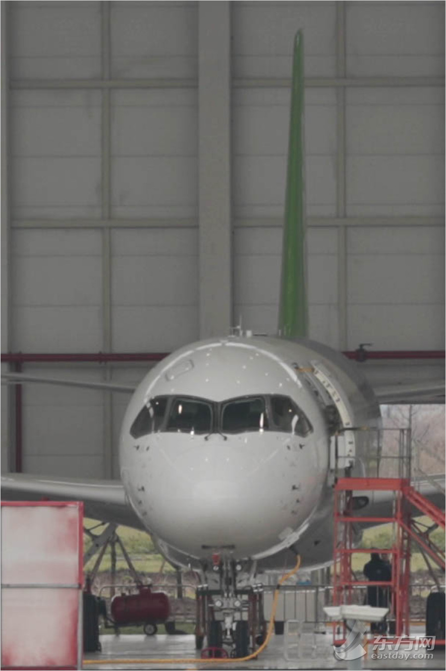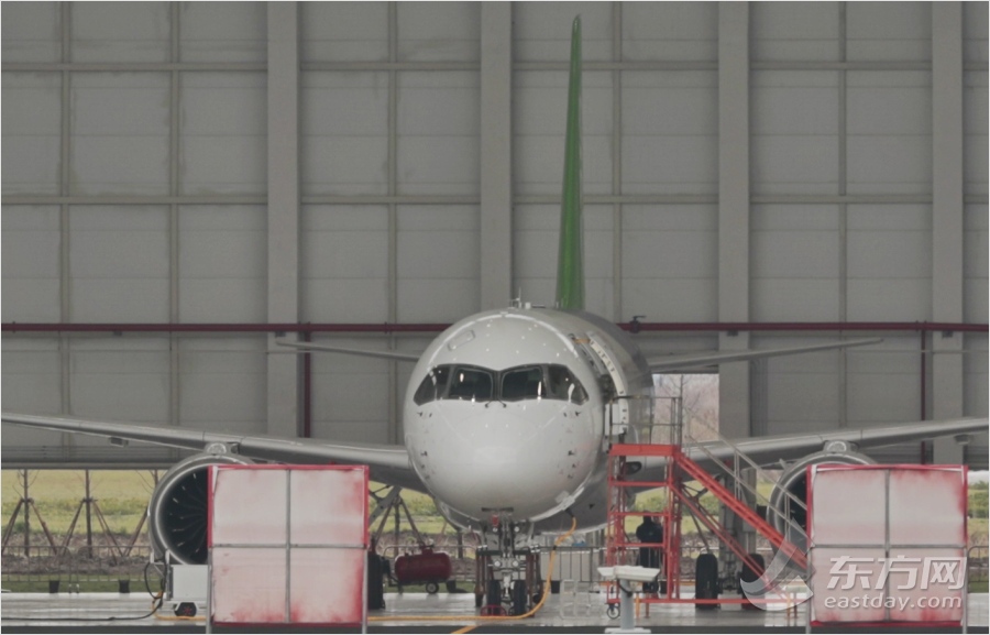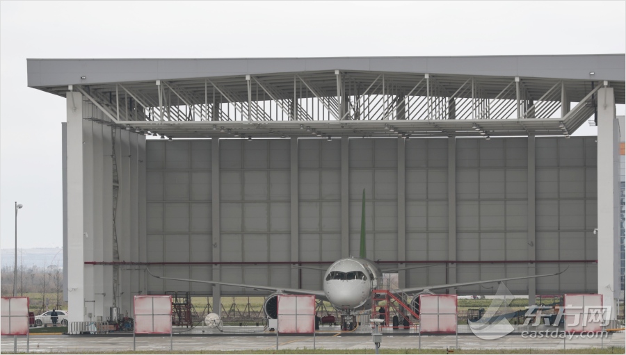 近日,為確保C919大型客機首飛成功,對C919設(shè)計結(jié)果、制造狀態(tài)、試飛和客服工程準備工作進行確認,中國商用飛機有限責(zé)任公司在上海組織召開了C919首飛技術(shù)評審會。評審委員會一致同意通過C919首飛技術(shù)評審。同時,建議在完成電磁兼容等試驗及滑行試驗驗證后可提請首飛放飛評審,這標志著C919向著首飛目標又邁出了堅實的一步。圖為:中國國產(chǎn)大飛機c919正在上海浦東機場機庫中調(diào)試。