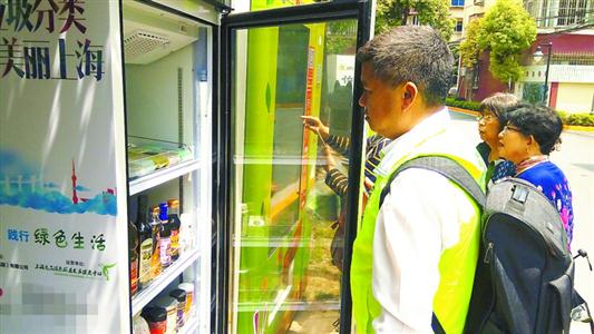 近期,上海不少小區(qū)內(nèi)出現(xiàn)草綠色的長方體機(jī)器,居民在機(jī)器上掃一下綠色賬戶積分卡,就能用積分直接兌換零食、飲料、米面油等食品或生活用品。昨天,記者從普陀區(qū)綠化市容局舉行的一場垃圾分類推進(jìn)活動上獲悉,截至目前,上海已有近60臺綠色賬戶積分智能兌換機(jī)上崗,分散在黃浦、長寧、楊浦、閔行、松江等區(qū)的居民區(qū)內(nèi)。