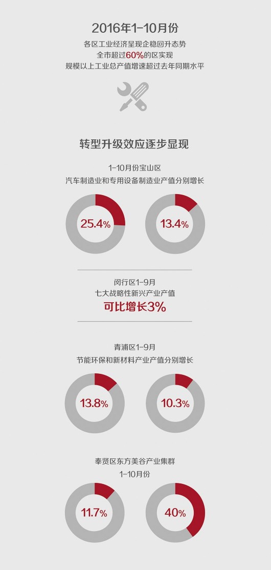 據(jù)解放日報、上觀新聞,上海區(qū)域經(jīng)濟社會形勢分析報告顯示,2016年上海區(qū)域經(jīng)濟社會發(fā)展穩(wěn)中有為、穩(wěn)中有進,區(qū)域經(jīng)濟社會發(fā)展總體好于預(yù)期,主要指標(biāo)延續(xù)了平穩(wěn)向好態(tài)勢,前期下行壓力較大的工業(yè)、出口、投資等指標(biāo)有所改善。