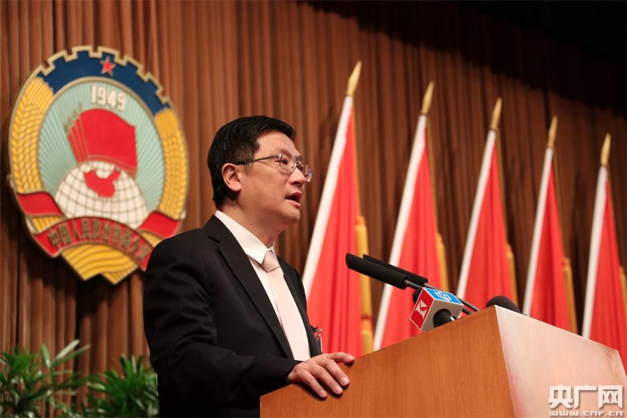 金國(guó)偉委員代表科學(xué)技術(shù)界發(fā)言,題目是《上海裝備制造業(yè)出路在哪里》(央廣記者傅聞捷 攝) -