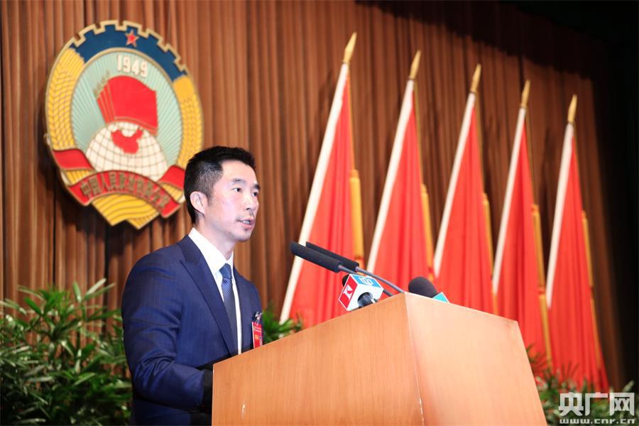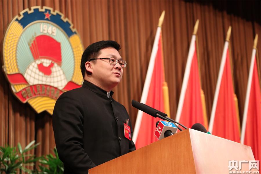王宇委員代表共青團(tuán)上海市委員會(huì)、上海市青年聯(lián)合會(huì)發(fā)言,發(fā)言的題目是《發(fā)展實(shí)體經(jīng)濟(jì) 不能讓青年人走開(kāi)》(央廣記者傅聞捷 攝) -
