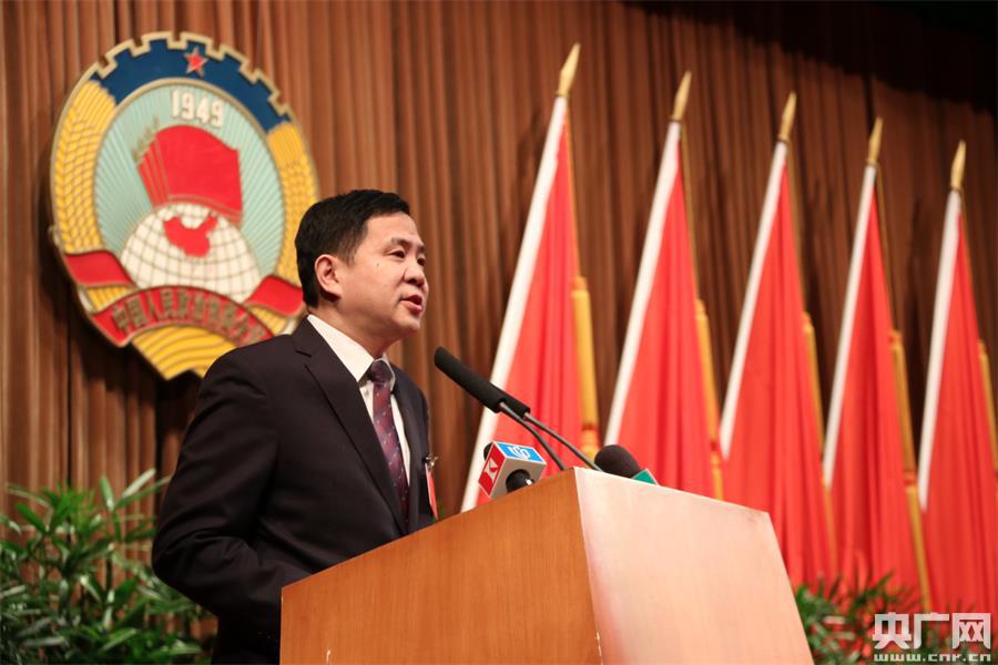 許劍民委員發(fā)言,發(fā)言的題目是《提高垃圾處理效能 緩解城市垃圾處理壓力》(央廣記者傅聞捷 攝) -