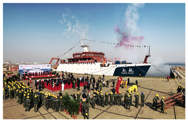 央廣網(wǎng)上海3月3日消息(記者吳善陽(yáng) 通訊員屈琳琳)我國(guó)第一艘遠(yuǎn)洋漁業(yè)資源調(diào)查船“淞航”號(hào)今天在天津下水,標(biāo)志著國(guó)內(nèi)最先進(jìn)、噸位最大的漁業(yè)資源調(diào)查船主體工程勝利完工。下水后,“淞航”號(hào)將進(jìn)入設(shè)備安裝調(diào)試、內(nèi)部裝修階段,最終以優(yōu)良的船舶性能和強(qiáng)大的科考功能服務(wù)大洋調(diào)查科考。