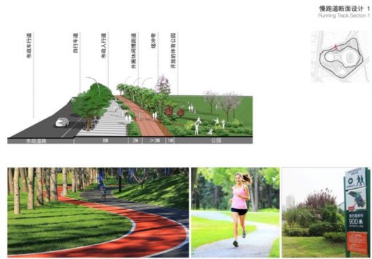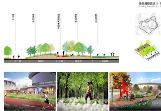 徐家匯體育公園將打造多層次的慢跑系統(tǒng)。通過聯(lián)動(dòng)城市界面,利用人行道空間,結(jié)合街道斷面改造設(shè)計(jì),營(yíng)造安全舒適的沿街步道,與徐匯區(qū)的街道跑步網(wǎng)絡(luò)對(duì)接。在公園內(nèi)部,形成串聯(lián)場(chǎng)館和戶外空間的地面慢跑道,線形靈活有趣,結(jié)合公園的不同功能布局,營(yíng)造移步異景的跑步感受。