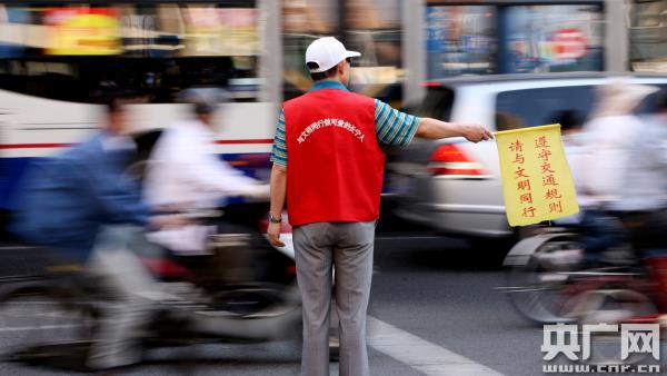 上海市徐匯區(qū)天平街道退休職工劉大爺每天早晨7點(diǎn)半到8點(diǎn)半之間都會(huì)在徐家匯商圈的重要路口執(zhí)勤。每天都有150余名志愿者出現(xiàn)在徐匯的40個(gè)主要交通路口,協(xié)助交警做好交通文明引導(dǎo)。徐匯區(qū)充分發(fā)動(dòng)社會(huì)力量,爭(zhēng)創(chuàng)全國(guó)文明城區(qū)。