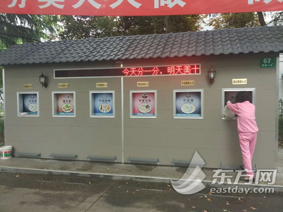 5月2日,東方網(wǎng)記者來到淞南一村,在70號樓前記者看到有一個分類垃圾箱,總共有6個垃圾投放口,分別是兩個濕垃圾投放口,兩個干垃圾投放口以及可回收垃圾投放口和有害垃圾投放口。當(dāng)進入到垃圾箱的感應(yīng)范圍內(nèi),垃圾箱還會自動播放語音“感謝您對垃圾分類做出貢獻(xiàn)”。69號樓的梁阿姨正在往里面投放垃圾,她將濕垃圾和干垃圾分別投放到了不同的垃圾投放口!斑@個分類垃圾箱建好有一個多月了,垃圾箱外邊還有感應(yīng)燈,天一黑,燈就亮了。一般是早上九點和下午5點左右扔垃圾的人比較多,而且垃圾分類還可以積分兌獎品。雖然這個時間段扔垃圾沒有積分,但是逐漸養(yǎng)成了將垃圾分類投放的習(xí)慣!睋(jù)東方網(wǎng)記者了解,這個分類垃圾箱還配備了兩名垃圾分類專管員,據(jù)專管員邵生產(chǎn)介紹,每天都會定時清理里面的垃圾,干濕垃圾分好類后,就會被車輛拉去不同垃圾處理站處理。淞南一村小區(qū)有7個垃圾箱,濕垃圾基本上每天一車就能拉完。