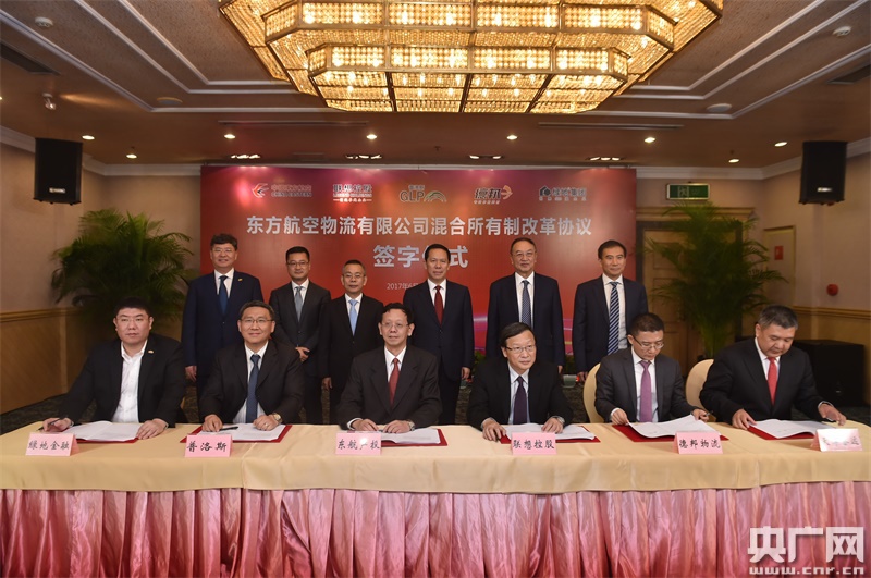 央廣網(wǎng)上海6月19日消息(記者吳善陽)中國東方航空集團公司旗下東方航空物流有限公司開展國家民航領(lǐng)域混合所有制改革試點取得重大成果。今天,東航集團與聯(lián)想控股股份有限公司、普洛斯投資(上海)有限公司、德邦物流股份有限公司、綠地金融投資控股集團有限公司等四家投資者,以及東航物流核心員工持股層代表,在上海正式簽署增資協(xié)議、股東協(xié)議和公司章程。這標(biāo)志著國家首批推進的“七大領(lǐng)域”混合所有制改革試點在民航領(lǐng)域?qū)崿F(xiàn)“落地”;標(biāo)志著東航集團主動適應(yīng)經(jīng)濟發(fā)展新常態(tài),進一步做“優(yōu)”做“活”國有企業(yè),探索混合所有制改革取得實質(zhì)性成效;標(biāo)志著東航集團、聯(lián)想控股、普洛斯、德邦、綠地和員工持股層所代表的各種所有制資本,緊密融合、共贏發(fā)展、共同打造中國民航領(lǐng)域混合所有制改革的“第一樣本”。