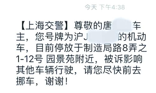 這次,記者請一位沒有在“上海交警”APP上綁定過車輛信息的車主,投訴了一位同樣沒有在平臺上綁定過車輛信息的滬牌車車主。測試顯示,提醒短信同樣成功送達!