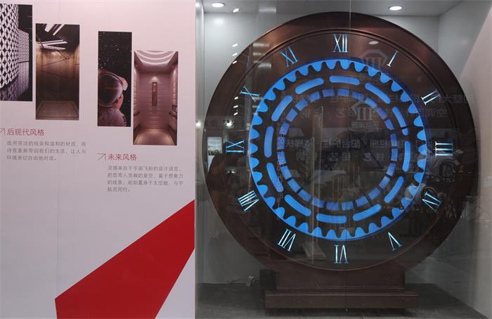 現(xiàn)場展示中還別出心裁地將轎廂與古典時鐘相結(jié)合,時鐘指向19:12分,寓意迅達(dá)第一臺住宅電梯誕生的年份1912年。現(xiàn)代時尚碰撞古老經(jīng)典,引領(lǐng)新的設(shè)計風(fēng)尚。