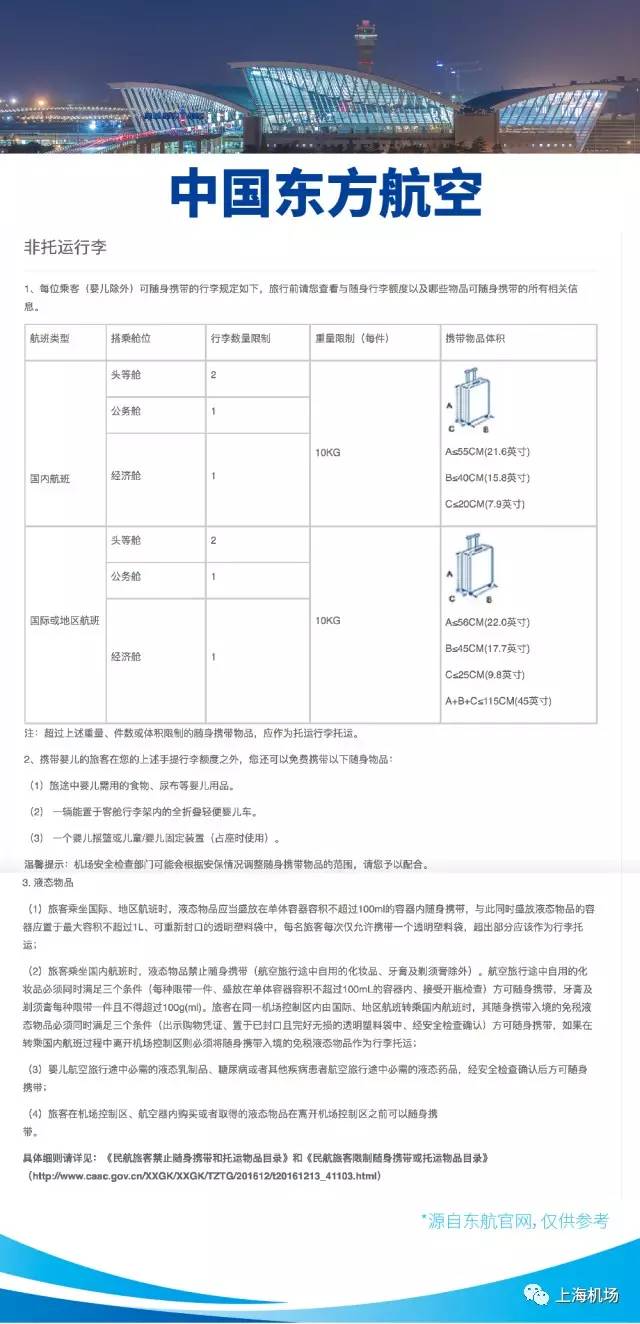 上海機(jī)場(chǎng)集團(tuán)今天提醒,9月1日起,各航空公司將與浦東機(jī)場(chǎng)全面加強(qiáng)對(duì)旅客手提超規(guī)行李物品的檢查,并在候機(jī)區(qū)入口處設(shè)置管控環(huán)節(jié)。請(qǐng)準(zhǔn)備乘機(jī)的朋友提前與航空公司確認(rèn)手提行李限額超規(guī)行李物品,并在辦票時(shí)盡早托運(yùn),以免耽誤行程。主要航空公司關(guān)于手提行李的規(guī)定詳見(jiàn)下文↓