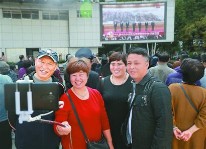 昨天,十九屆中共中央政治局常委同中外記者見(jiàn)面的電視實(shí)況直播引人關(guān)注,南京路步行街世紀(jì)廣場(chǎng)大屏幕前,游客行人駐足觀看。(記者海沙爾 攝)
