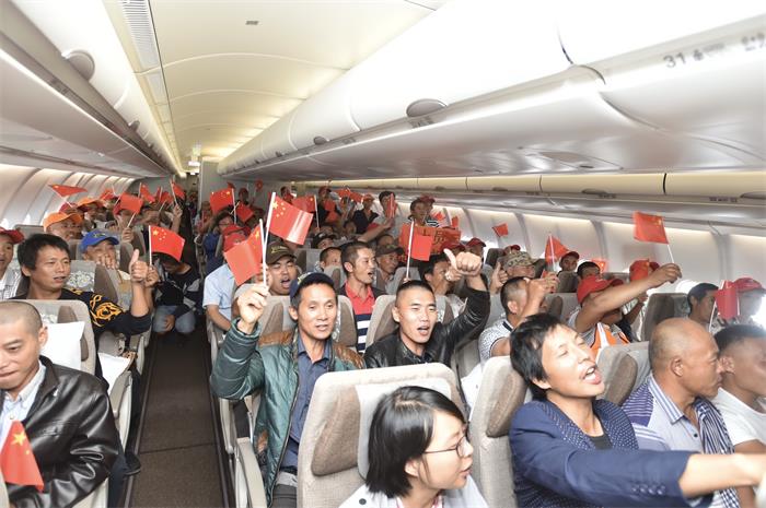 “祖國萬歲!熱烈歡迎同胞回家!”10月1日夜間的上海虹橋機場燈火通明。在這舉國歡迎的日子里,伴隨著飛機的轟鳴聲,21:04分和21:39分,兩架東航A330客機分別降落,381名在加勒比颶風(fēng)中受災(zāi)的同胞安全順利地回到祖國的懷抱。中國商務(wù)部、民航華東管理局、東航、上海市商委以及相關(guān)企業(yè)的領(lǐng)導(dǎo)在機坪上迎接歸國同胞和東航全體機組成員凱旋。至此,東航歷時4天圓滿完成了多米尼克中方人員緊急轉(zhuǎn)移回國任務(wù)。