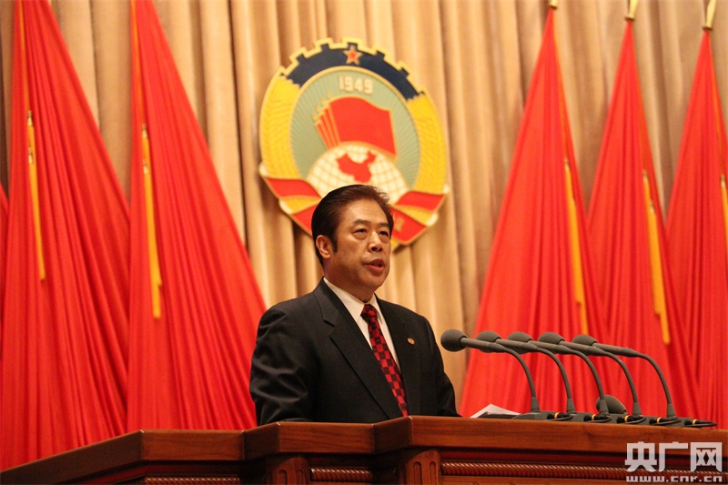 吳志明代表政協(xié)上海市第十二屆委員會常務(wù)委員會,向大會報告工作。