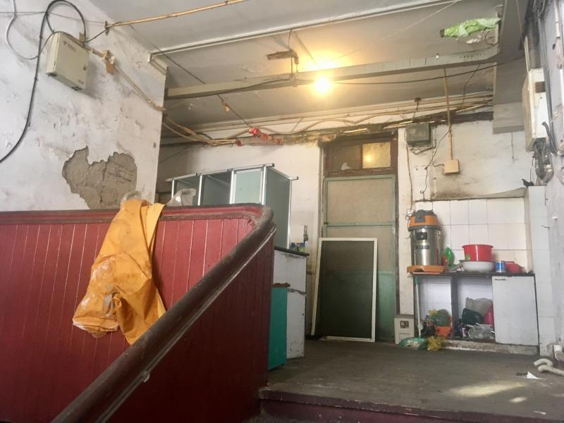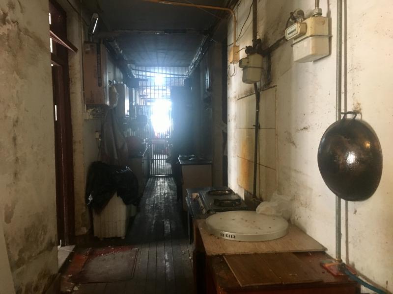 走進(jìn)樓里,木板鋪設(shè)的地面和樓梯吱呀作響,樓上有人走路說話,樓下的聲音都清晰可聞。由于不成套,每戶居民的室內(nèi)空間太小,家里堆不下的東西就往外放,狹窄的過道里堆滿了雜七雜八的生活物品,臉盆、自行車、舊書報、紙皮箱……一層樓16戶,共用一個公共衛(wèi)生間,沒有廚房,家家在門口私搭灶臺,每到傍晚時分,裊裊炊煙彌漫在狹窄的過道。