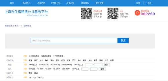 圖片說明:上海市住房租賃公共服務(wù)平臺(tái)頁面
