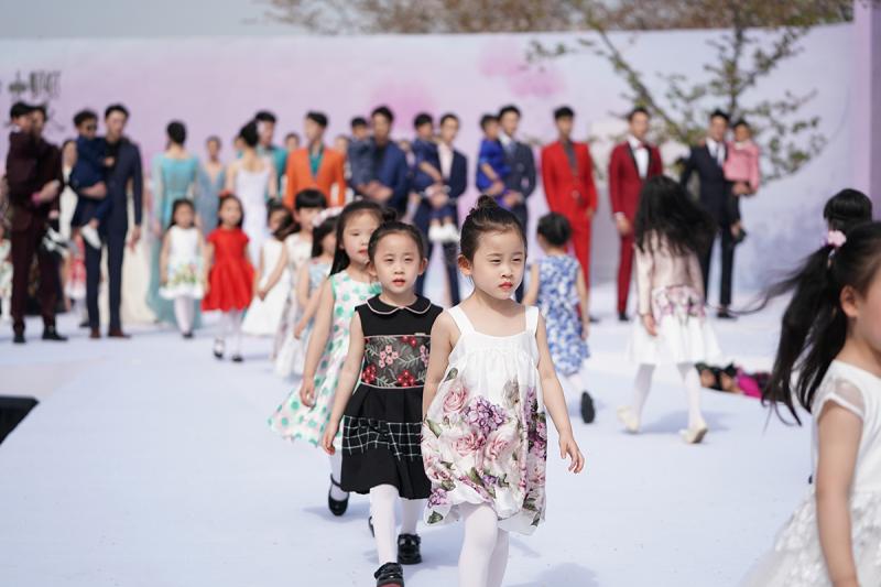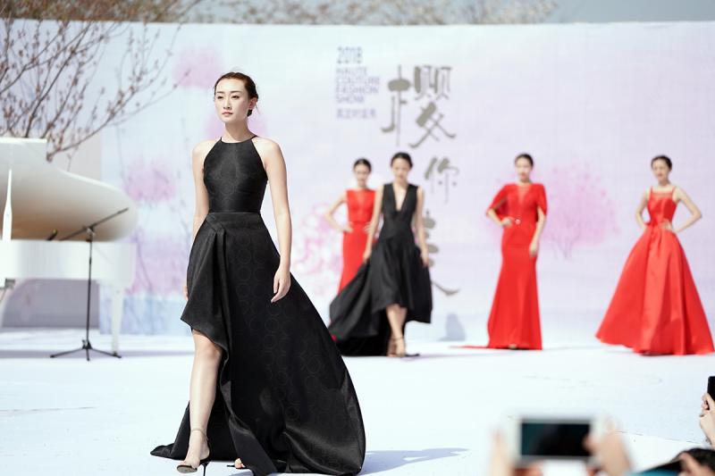 在昆曲聲中,櫻花秀場(chǎng)的觀眾越聚越多,賞櫻的人群都被這極富傳統(tǒng)韻味的表演吸引了過(guò)來(lái)。不過(guò),緊接著的高定時(shí)裝秀卻充滿(mǎn)了時(shí)尚意味,展現(xiàn)出櫻花林的“現(xiàn)代”一面。純白的蕾絲連衣裙、做工精良男士西裝、立體雕花的落地晚禮服與色彩繽紛的童裝一一亮相,百余套高定服裝展示了手作時(shí)裝的翩然魅力。有趣的是,在小模特們穿著童裝走秀的同時(shí),青年芭蕾舞演員梁文好也登臺(tái)了,芭蕾演出服上的櫻花呼應(yīng)了時(shí)裝秀的主題,優(yōu)雅的芭蕾舞姿更令人難忘。