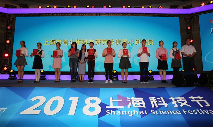 嘉賓為上海市青少年科學(xué)研究院優(yōu)秀小研究員頒獎(陸嘉輝 攝)