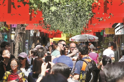 昨天,田子坊里人頭攢動,游客享受愜意假期。記者 蔣迪雯 攝