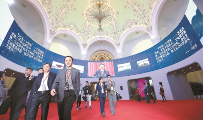 360度環(huán)幕影片《江海交匯 國之重托》呈現(xiàn)了長三角文化產(chǎn)業(yè)欣欣向榮的發(fā)展景象。記者 蔣迪雯 攝
