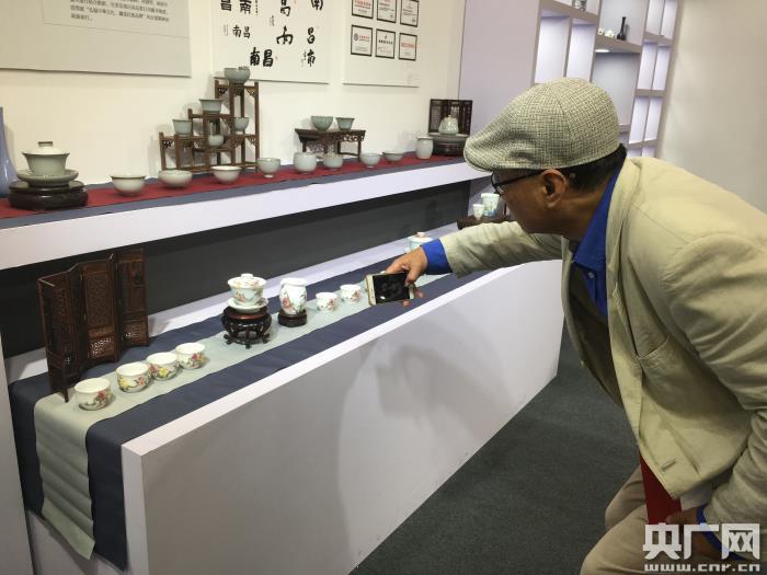 精美瓷器引起消費者興趣。(央廣網(wǎng)記者 吳善陽 攝)