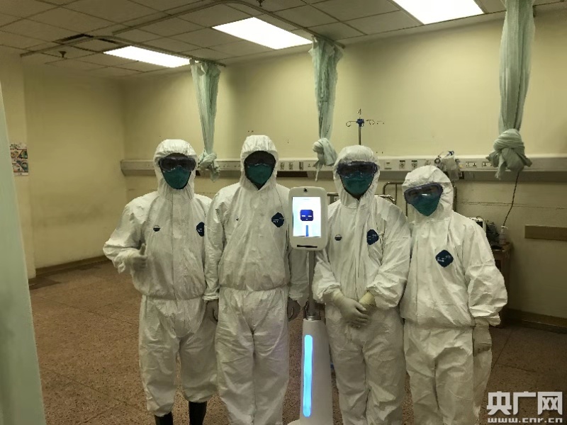 上海援武漢第三批醫(yī)療隊收到了上海交通大學醫(yī)學院吳韜研究團隊捐贈支援的2臺AirFace人工智能醫(yī)護服務機器人 (央廣網(wǎng)發(fā) 交大醫(yī)學院供圖)