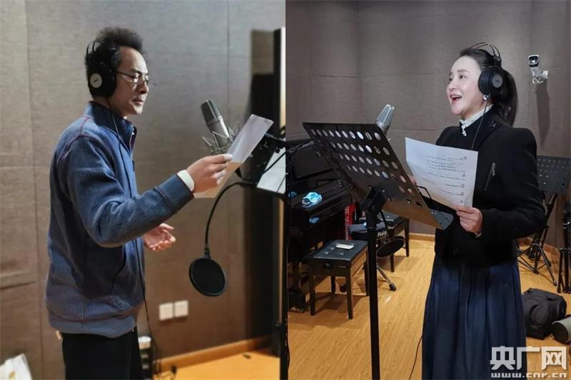 上海京劇團一級演員李軍攜滬上青年歌唱家夢葦?shù)裙餐V寫《銘記》(央廣網(wǎng)發(fā) 奉賢區(qū)融媒體中心供圖)