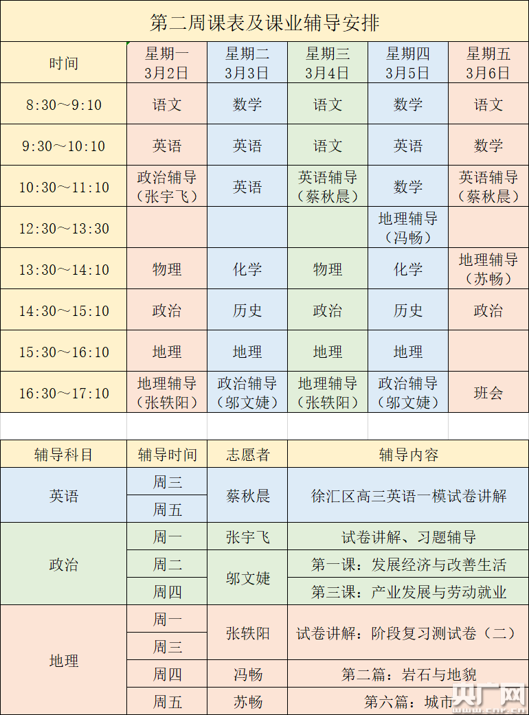 負責醫(yī)療隊運行保障的陶軍華,女兒小慧念高二,5月份就要地理等級考了,6月份還有歷史、政治、物理和化學的合格考。志愿者張軼陽就根據(jù)實際情況為她制定了地理、英語、政治等課程的課表,每天中午或放學后輔導一至兩門,其他時間進行答疑;