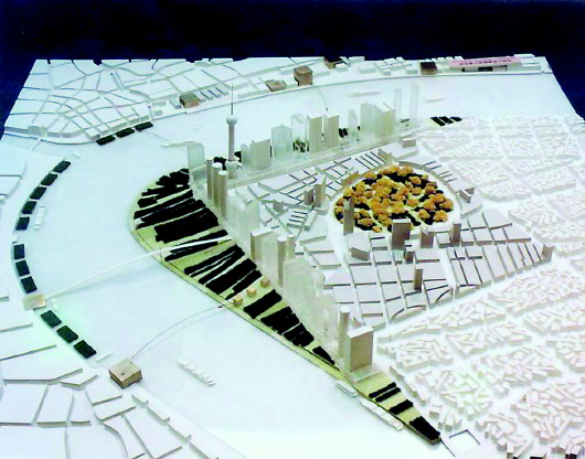 中國最終匯總優(yōu)化的方案有4個特點:一是選取了國際咨詢各家方案的優(yōu)點,因地制宜結(jié)合地域特征形成了實施方案,尤其是耗費巨資建設了核心的中心綠地;二是在建筑群落空間層次方面,從浦西看浦東,由低到高、功能有序,層次感強;三是強調(diào)了東西向的軸線功能和開發(fā)潛力,后來演變成著名的世紀大道,串聯(lián)和引導了陸家嘴其他功能區(qū)的開發(fā)建設。