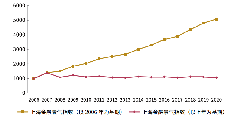 2006-2020年上海金融景氣指數(shù)曲線(注:指數(shù)以2006年為基期,基點為1000點。)
