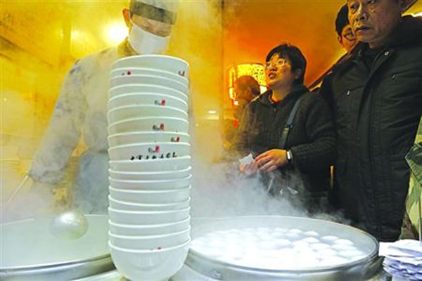 據(jù)解放網(wǎng)消息 來一碗軟糯香甜的湯圓,祈福新年團(tuán)圓美滿。臨近元宵,申城老字號湯團(tuán)店進(jìn)入一年中最忙的日子。豫園九曲橋邊的“寧波湯團(tuán)店”,這幾天湯圓的日銷量都超過了7萬只,其中外賣約4萬只;25名員工全員上崗,輪班包制才能滿足顧客需求。閔行“七寶老街湯團(tuán)店”,要買盒生湯圓,得排隊(duì)一個多小時。雖然,如今的湯圓稀奇口味多了,市民的選擇多了,但最熱銷的還是肉餡湯圓和芝麻餡湯圓。