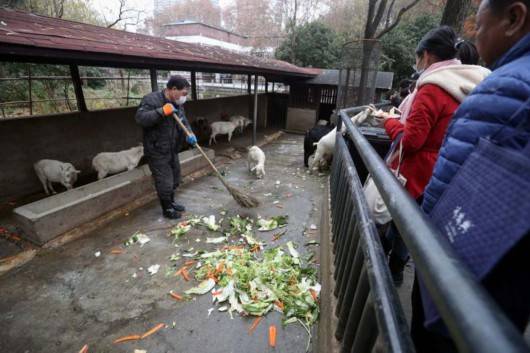 12月27日,家長(zhǎng)領(lǐng)著孩子帶上品種豐富的蔬菜涌向和平公園動(dòng)物島,讓它們吃好喝好搬新家。
