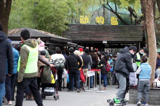 上午10點(diǎn)半左右,動(dòng)物島外排起了長(zhǎng)隊(duì),島內(nèi)瞬時(shí)客流也達(dá)到了500人的上限。