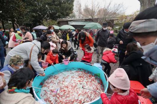 孩子們圍坐魚池,恨不能都釣回家。