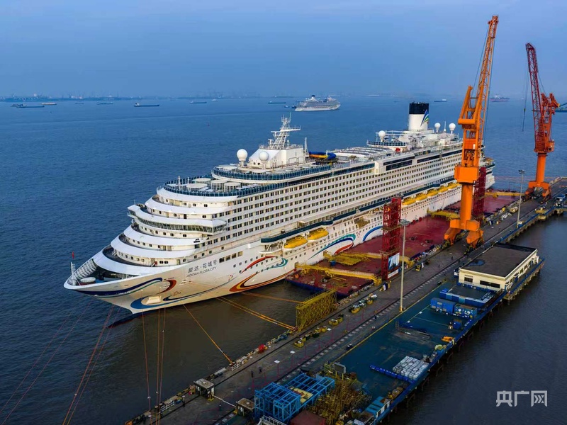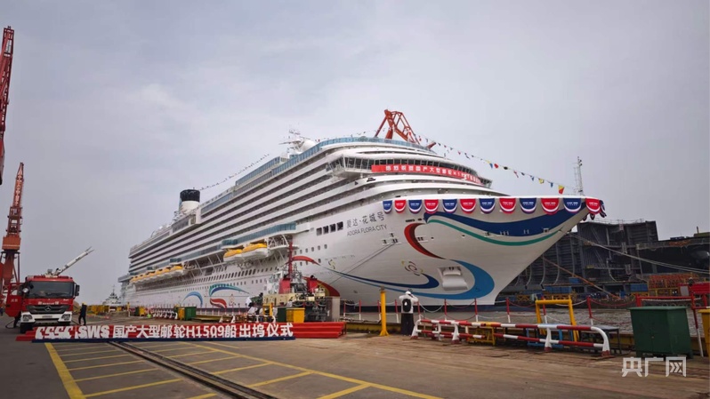 “愛達(dá)·花城號(hào)”于3月20日順利出塢(央廣網(wǎng)記者 林馥榆 攝)