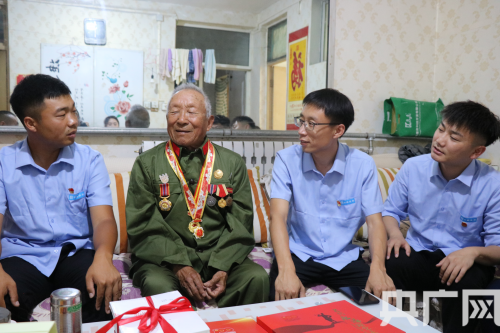 黨員志愿者們先后走進(jìn)老黨員劉君重和喬德秀家中,同他們親切交談,詳細(xì)詢問他們的健康和生活狀況,傾聽他們當(dāng)前生活上的困難和問題,叮囑他們多保重身體,為他們送上了粽子、米、面、油等慰問品和黨史書籍。老黨員們對志愿者的到來表示十分感謝,開心激動之余追憶起當(dāng)年的崢嶸歲月,為大家講述當(dāng)年的革命故事,對志愿者們提出了殷切期望。