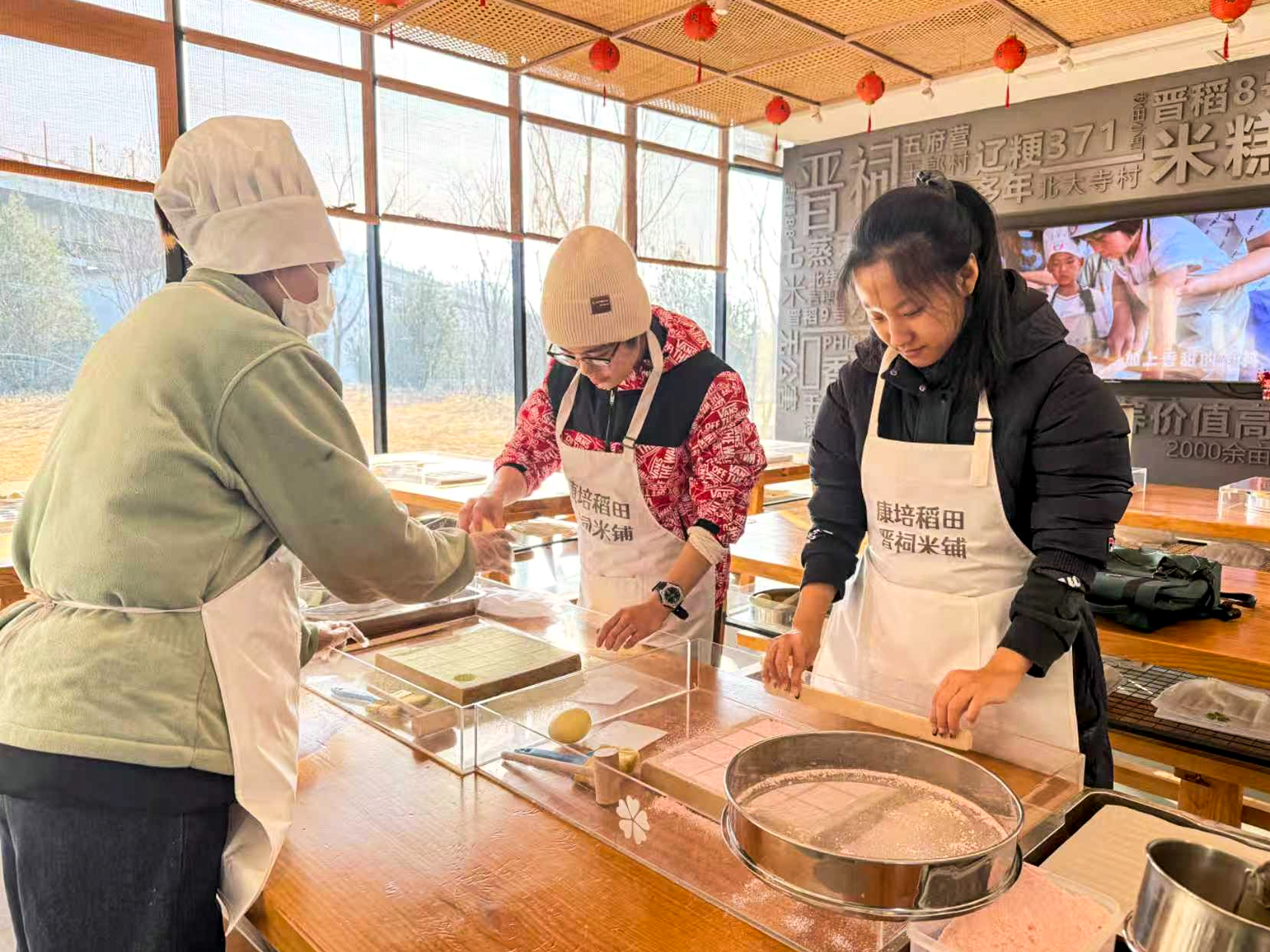 學(xué)生們親手體驗(yàn)米糕制作(晉源區(qū)委宣傳部供圖)