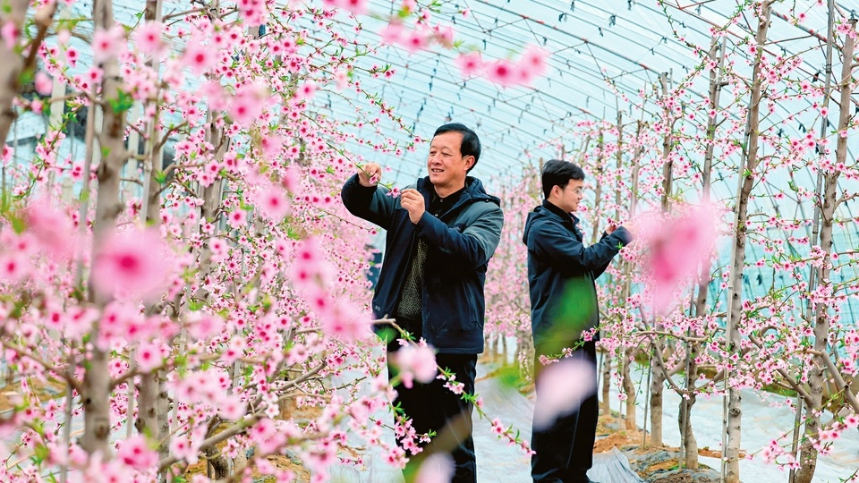 立春時節(jié),山西省運城市萬榮縣通化鎮(zhèn)西孝原村大棚里桃花盛開,果農(nóng)搶抓農(nóng)時開展桃樹管護(hù),確保增產(chǎn)豐收。近年來,當(dāng)?shù)貙⒎N植采摘與觀光休閑相結(jié)合,按照規(guī);、標(biāo)準(zhǔn)化、產(chǎn)業(yè)化經(jīng)營,推動農(nóng)旅融合、促進(jìn)農(nóng)民增收。(閆鑫)