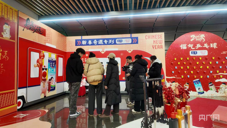 活動現(xiàn)場暖意融融,長風街地鐵站廳的聯(lián)名裝置成為市民打卡新地標。多元互動環(huán)節(jié)兼顧趣味與參與感:百福圖共創(chuàng)區(qū)里,市民以筆墨描福留名,寄托期許;新春專列打卡區(qū)融合雙品牌與馬年元素,吸引親子家庭、年輕群體合影分享;福氣投球游戲區(qū)歡聲笑語不斷,參與者投擲乒乓球收獲美好寓意,所有互動者均可參與新春盲盒抽獎。