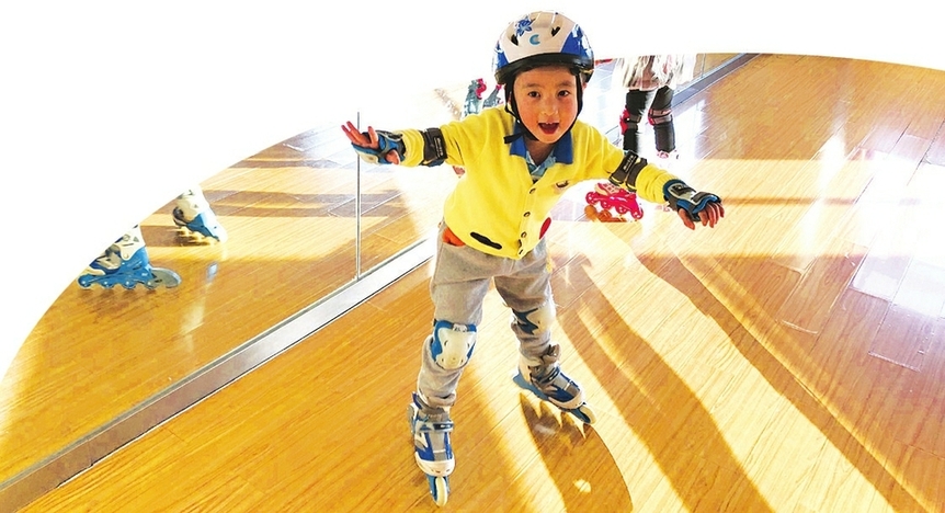 12月24日,太原市一處室內(nèi)活動(dòng)場(chǎng)所,一名孩童正在練習(xí)輪滑基本功。 記者李兆民攝 -