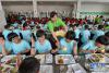 5月17日,陽曲縣首邑學(xué)校的學(xué)生在吃午飯。 為了讓貧困戶子女接受公平優(yōu)質(zhì)的教育,2017年山西省陽曲縣在原大盂中學(xué)基礎(chǔ)上改建了一所集小學(xué)、初中為一體的寄宿制學(xué)!滓貙W(xué)校,吸納全縣建檔立卡貧困戶的適齡子女就讀,并為他們提供免費食宿。 目前,該校共有學(xué)生411人,其中241人來自建檔立卡貧困戶,貧困學(xué)生占全部學(xué)生比例達(dá)58%,未來將會有更多貧困家庭的孩子受益于陽曲縣的教育扶貧政策,走進(jìn)多彩的學(xué)堂。 新華社記者 曹陽 攝 -