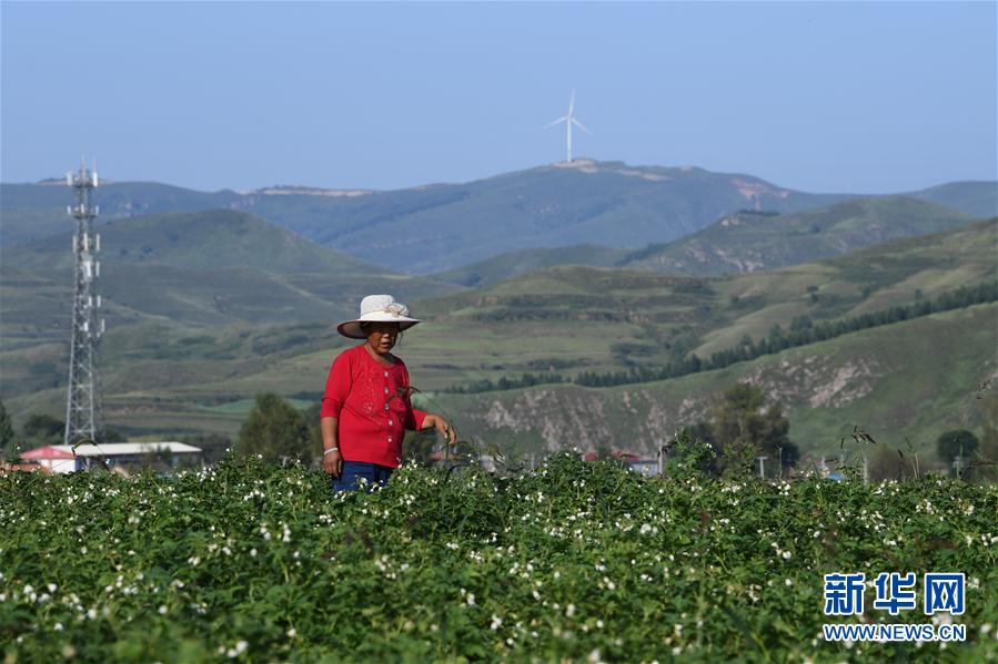 嵐縣河口鄉(xiāng)王家村村民史鳳英在土豆地里除草(8月14日攝) 山西省呂梁市嵐縣地處呂梁山北麓,日照充足,晝夜溫差大,種植土豆的條件得天獨厚,全縣土豆種植面積達到30萬畝,年產(chǎn)超過40萬噸。 近年來,嵐縣將土豆產(chǎn)業(yè)與土豆文化高度融合,打造了嵐縣土豆花、土豆宴、土豆種等多個品牌,闖出了一條特色土豆產(chǎn)業(yè)發(fā)展之路。 新華社記者楊晨光 攝 -