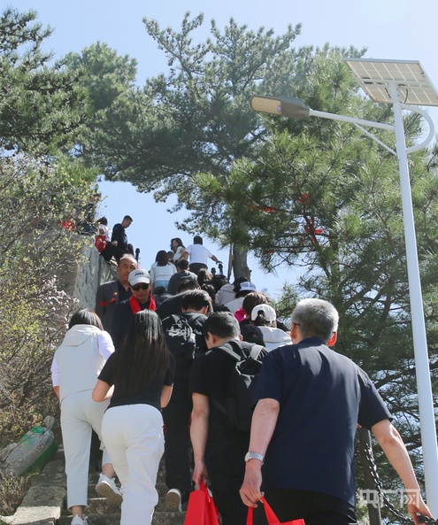沿著青石步道拾級(jí)而上,步步皆景、處處入畫。花枝隨風(fēng)輕舒,花瓣簌簌飄落,鋪就一條條浪漫花徑;林間鳥鳴清脆,與游客歡聲笑語(yǔ)交織,匯成動(dòng)聽(tīng)的春日交響曲;山間云影流轉(zhuǎn),陽(yáng)光透過(guò)花枝灑下斑駁光影,一步一景皆藏詩(shī)意。游客們或漫步花海深呼吸,沉醉自然野趣;或舉手機(jī)相機(jī)駐足打卡,定格春日盛景;或結(jié)伴邊走邊聊,賞雄奇風(fēng)光、品道教文化,盡享踏青愜意。