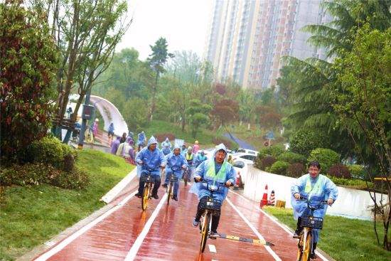 在項(xiàng)目現(xiàn)場(chǎng),一場(chǎng)騎行“角逐”正拉開(kāi)帷幕,參賽者們正騎行穿梭在自行車(chē)賽道上,呼吸著花草散發(fā)的清香,進(jìn)行速度與激情的比拼。