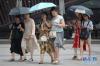 酷暑下的西安市民(7月3日攝)。 陜西持續(xù)高溫天氣,西安、寶雞、安康等多地發(fā)布高溫預警。據(jù)最新預報顯示,今明兩天陜西大部分地區(qū)仍以晴到多云為主,關(guān)中南部和陜南東部部分地方還將出現(xiàn)35℃以上的高溫天氣,其中關(guān)中南部最高氣溫可達38℃至40℃,“燒烤”模式持續(xù)。新華社記者 劉瀟 攝 -