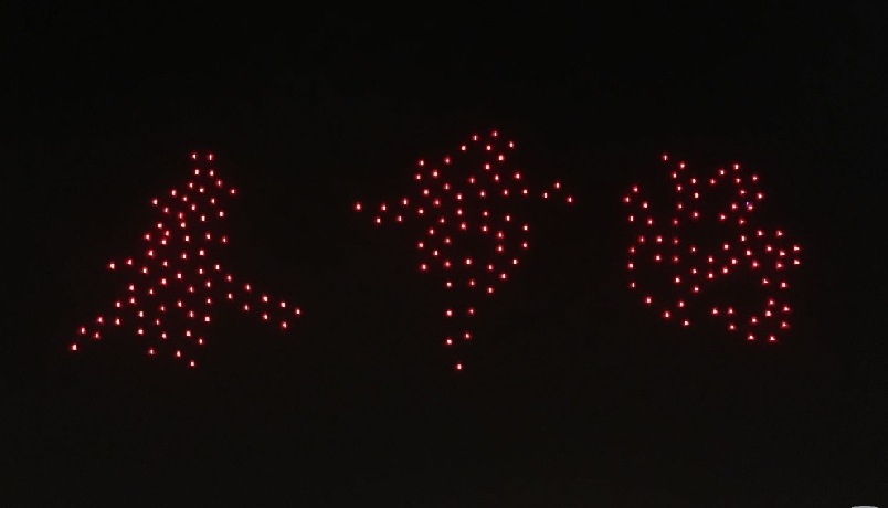 此外,為了配合“西安年·最中國(guó)”活動(dòng)主題以及大年初五“迎財(cái)神”的節(jié)日特色,在今晚的表演中,AB兩組無(wú)人機(jī)列陣分別在夜幕中組成6種圖案,包括財(cái)神、元寶、“!弊郑办弊,“西安年 最中國(guó)”主題字樣,手動(dòng)點(diǎn)贊動(dòng)畫(huà)等,這些都是首次編排,并為西安的表演創(chuàng)新加入的新圖案。
