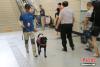 8月27日,專業(yè)馴導師李賽正對“黑妹”進行社會化訓練!昂诿谩笔且恢焕祭鄬と,也是西安首只導盲犬,將于今年10月份免費交付給盲人使用,已有上百名視障人士進行了申請。陜西省殘疾人輔助器具中心導盲犬發(fā)展服務中心成立于2016年,是西北首家導盲犬繁殖、培訓和應用的非盈利機構(gòu),擁有五名專業(yè)馴導師和26只訓練中的導盲犬。導盲犬訓練合格后,將全部免費交付給視力障礙人士使用。中新社記者 張遠 攝 -